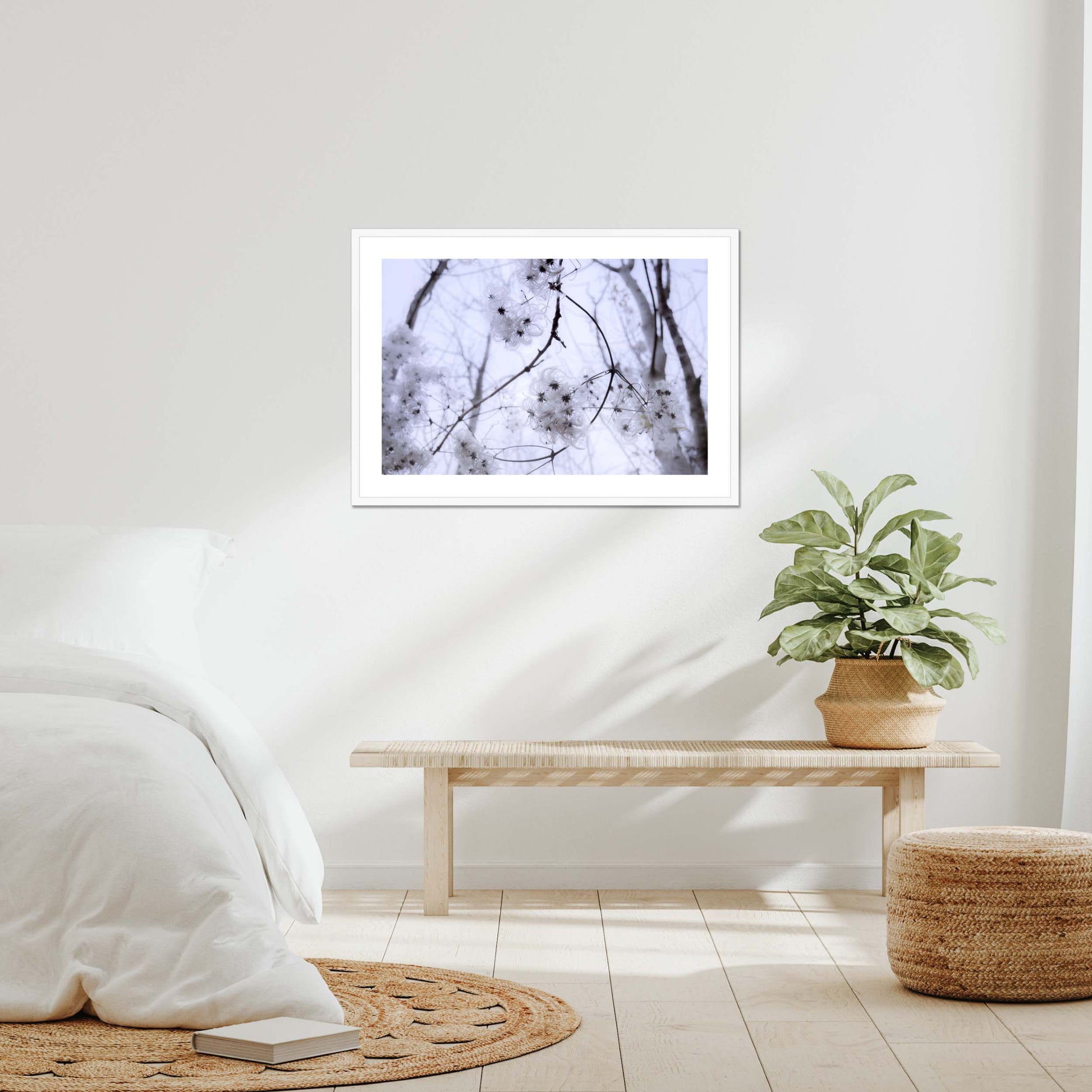 A dance of light unfolds amidst the branches of this tree where white wispy tendrils form an intricate image creating a display of natural luminosity.